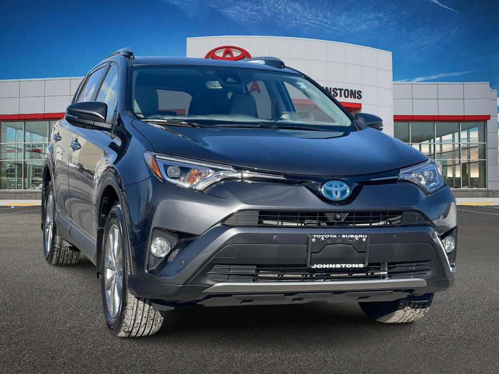 This vehicle is a 2017 Toyota RAV4 Hybrid SUV, an all wheel drive with a low mileage of 56,140 miles. It is equipped with a 2.5 liter 4 cylinder engine and sequential port fuel injection, providing optimal performance and efficiency. The magnetic gray metallic exterior of the car gives it a sleek and modern look, while the on demand four wheel drive, navigation system with voice recognition, and blind spot sensor make it easy to navigate any terrain. The car also has a 5 out of 5 star crash test rating, making it one of the safest cars on the market today. With features such as hill start assist and navigation with touch screen display, this car truly has it all! Johnstons Toyota is located in New Hampton, NY and proudly serves Warwick, Middletown, and Newburgh, New York. We are a premier Toyota Dealer in New York providing a full line of new and used cars , trucks, vans, and SUVs.