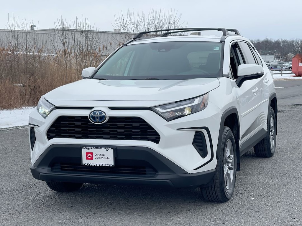 This vehicle is a 2022 Toyota RAV4 Hybrid XLE, certified pre-owned and with 46,721 miles. It has an all wheel drive system and a 2.5 liter 4 cylinder engine that produces 180 horsepower. The exterior of the car is a sleek white color and the interior is finished in a luxurious black fa20. This car has received a 5 out of 5 star crash test rating and comes with a number of features such as blind spot sensor, hill start assist, and on demand four wheel drive. This car is sure to turn heads wherever it goes! Johnstons Toyota is located in New Hampton, NY and proudly serves Warwick, Middletown, and Newburgh, New York. We are a premier Toyota Dealer in New York providing a full line of new and used cars , trucks, vans, and SUVs.