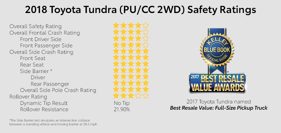 1794 Edition - The starting MSRP of the 2018 Tundra 1794 Edition is $47,080, and it gets its name from the year that the ranch that the Toyota plant now sits on, located in Texas, was founded. The Tundra 1794 Edition features many of the same premium features as the Tundra Platinum, but what sets it apart from the other trim levels is the styling. With a chrome billet-style grille and gunmetal-gray lower front bumper with chrome endcaps and available western-themed interior with perforated brown premium leather-trimmed seating, this style of Tundra is sure to turn heads all over the Goshen area and beyond.
