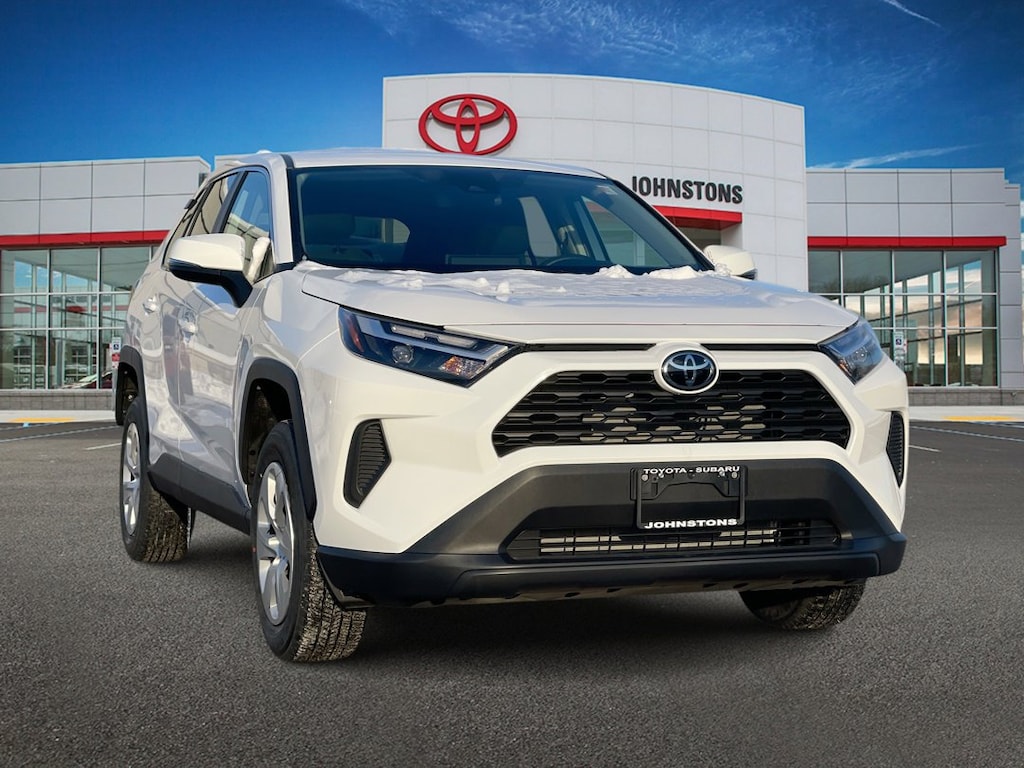 This vehicle is a 2025 Toyota RAV4 LE SUV all wheel drive, with low mileage of 2 miles. It is equipped with a 2.5 liter 4 cylinder engine and fuel injected engine, providing a fuel efficient performance. The exterior of this vehicle is ice cap 040, while the interior is finished in black. It has a crash test rating of 5 out of 5 stars, making it one of the safest vehicles on the road today. Vehicle features include touch screen display, Bluetooth audio connection, hill start assist, on demand four wheel drive, and Bluetooth phone connectivity. This car is truly one of a kind! Johnstons Toyota is located in New Hampton, NY and proudly serves Warwick, Middletown, and Newburgh, New York. We are a premier Toyota Dealer in New York providing a full line of new and used cars , trucks, vans, and SUVs.